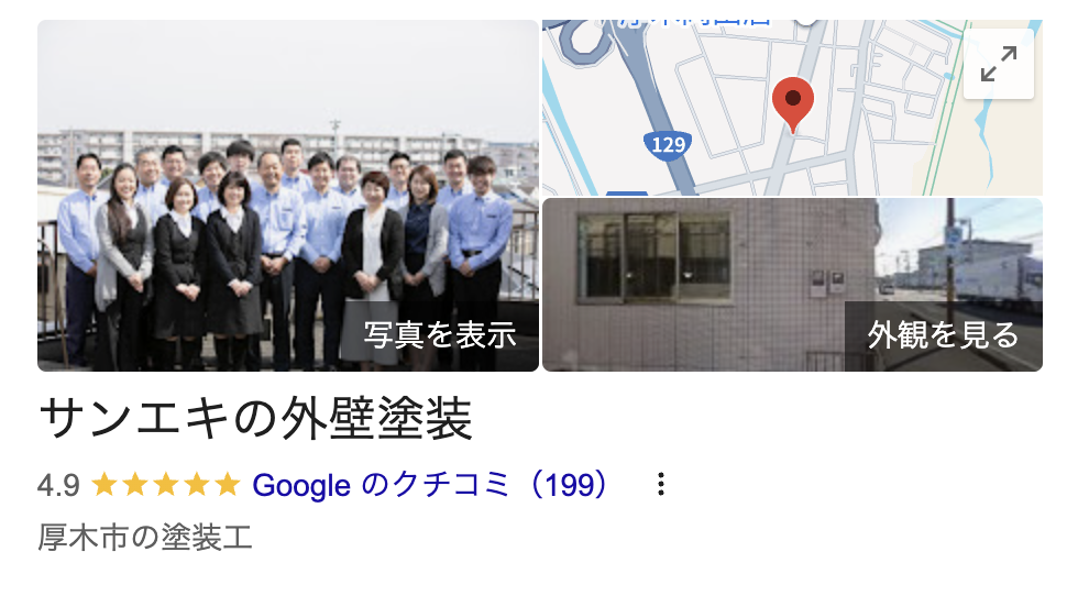 なお、検索エンジンや地図アプリ上では外壁塗装だけのホームページとその他リフォーム全般のページで分かれて表示されています。