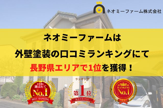長野県で外壁塗装を検討されている方は、Googleでの評判が良いネオミーファームさんから相見積もりをとってみてはいかがでしょうか?