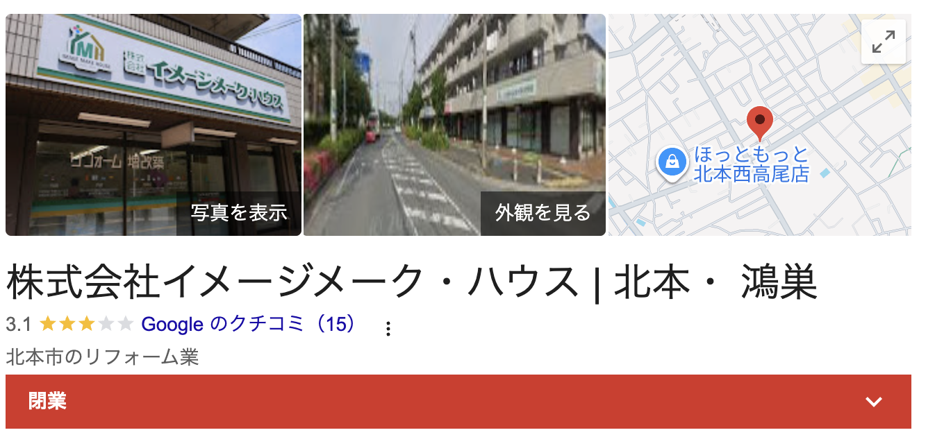 そこでこの記事では、Googleの口コミなどホームページ以外に載っているイメージメーク・ハウスの口コミを紹介していきます。