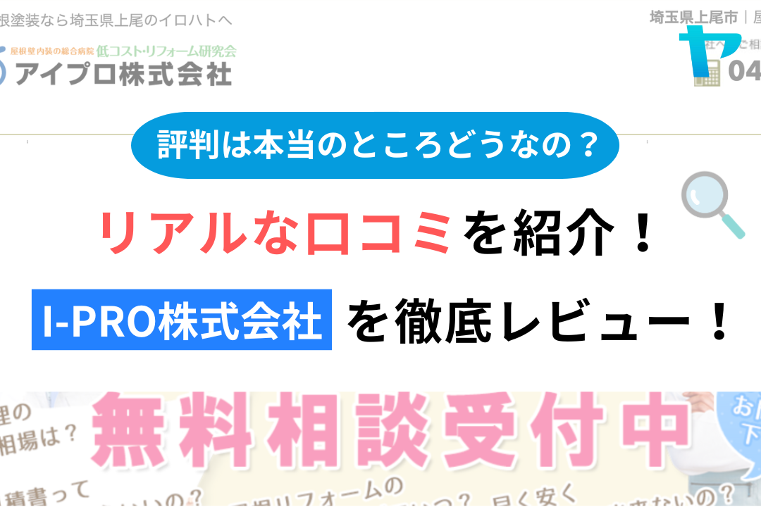今回は、埼玉県上尾市を拠点に外壁塗装を行っているI-PRO株式会社の評判について徹底的に調査してみました。