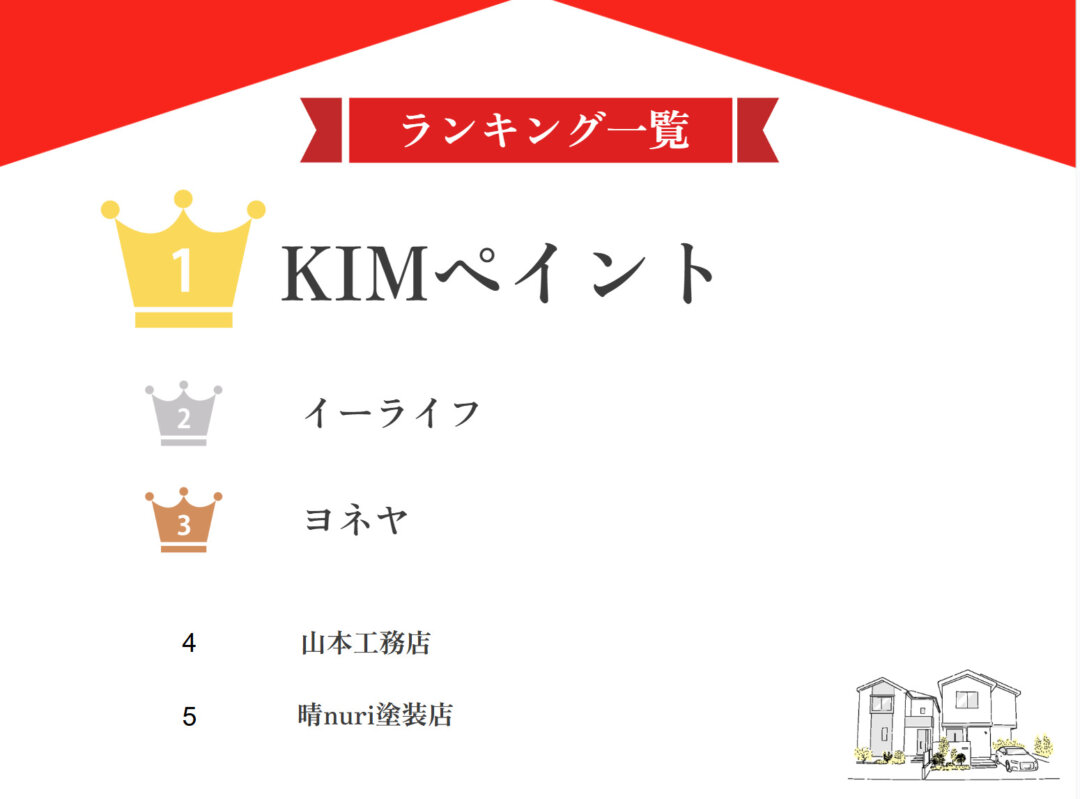 1位 | KIMペイント | ★★★★★ 5.0 | ◎ | ◎ | ◎ | 〇 |