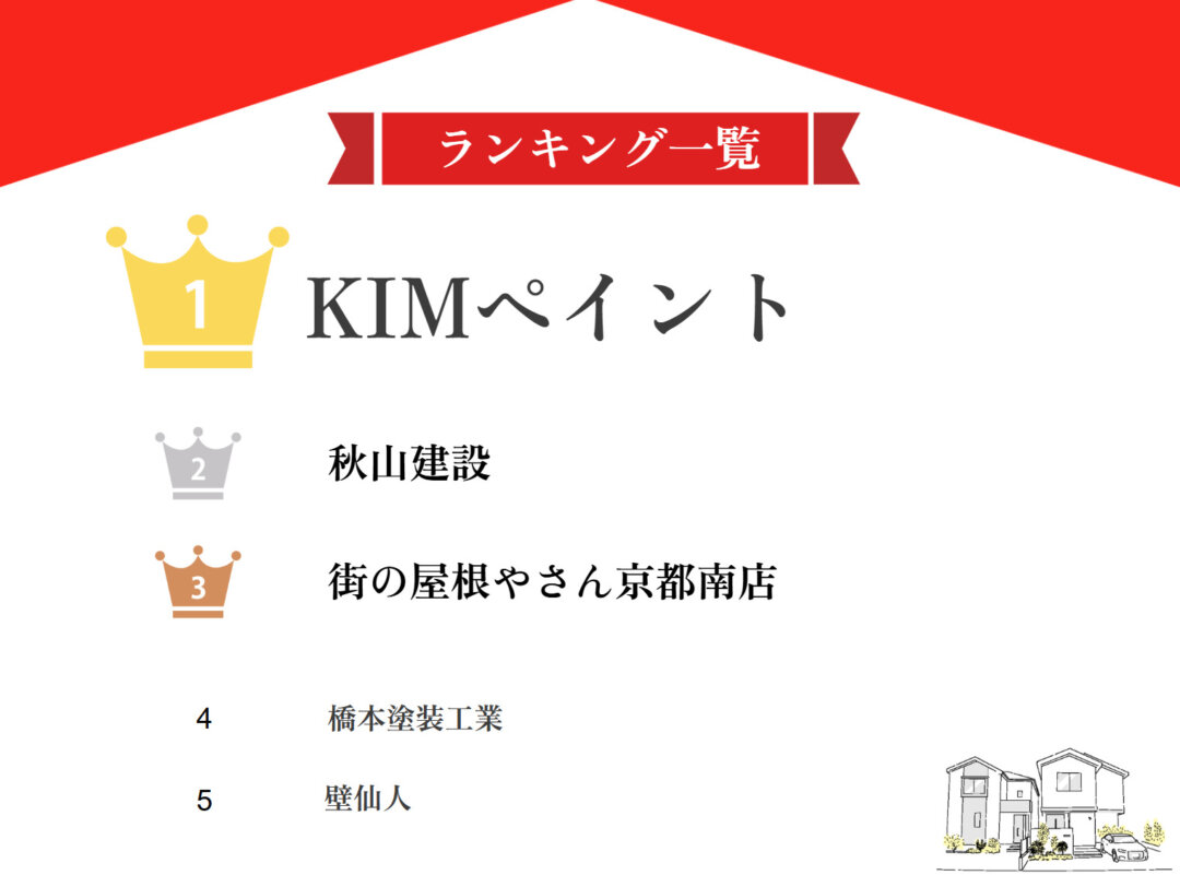 | 1位 | KIMペイント | ★★★★★5.0 | ◎ | ◎ | ◎ | 〇 |