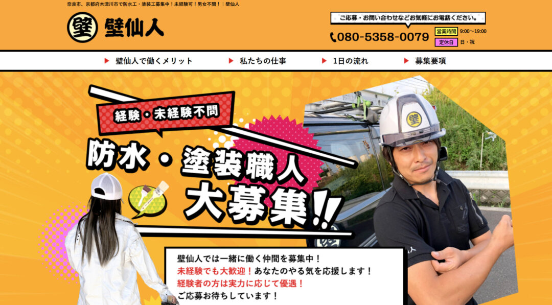 壁仙人は、京都府木津川市、奈良市を中心に防水・塗装工事を行っている業者です。