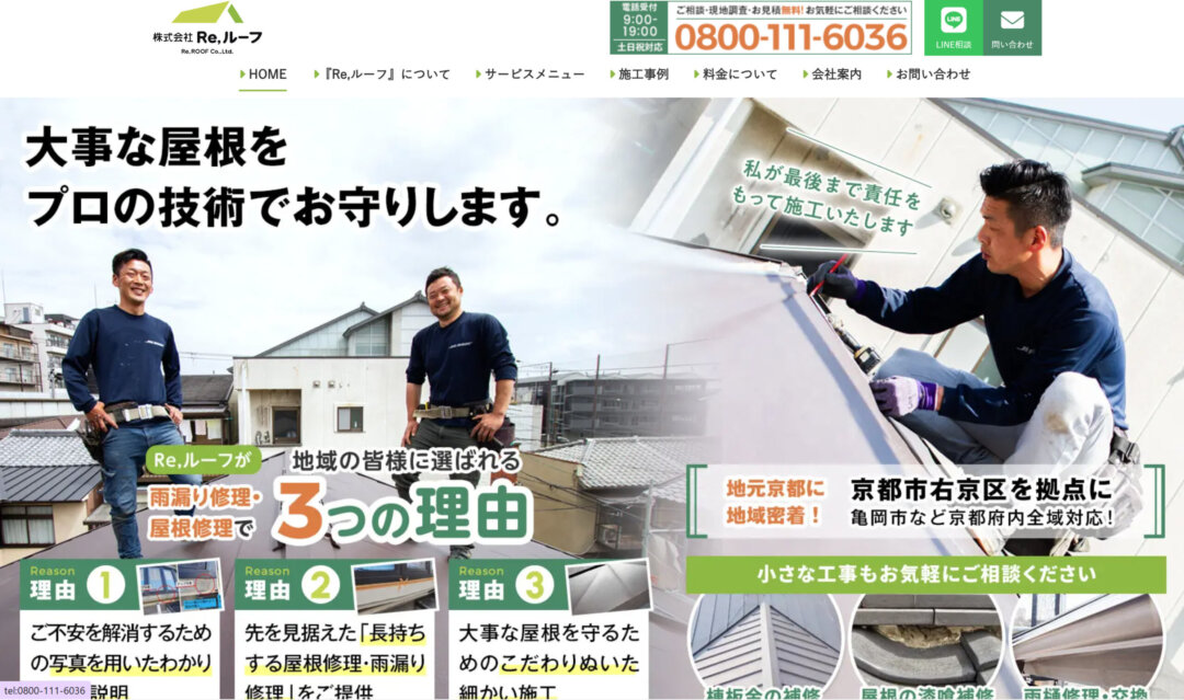 株式会社Reルーフは、京都市を中心に屋根工事を行っている業者です。