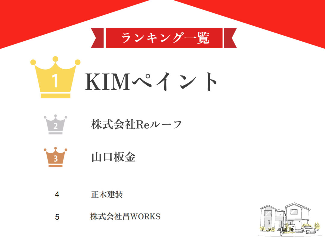 1位 | KIMペイント | ★★★★★5.0 | ◎ | ◎ | ◎ | 〇 |