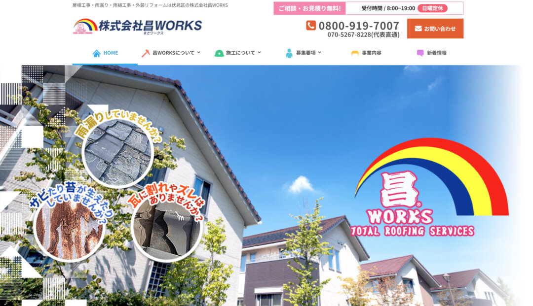 株式会社昌WORKSは、京都市を中心に屋根工事や雨樋工事を行っている業者です。
