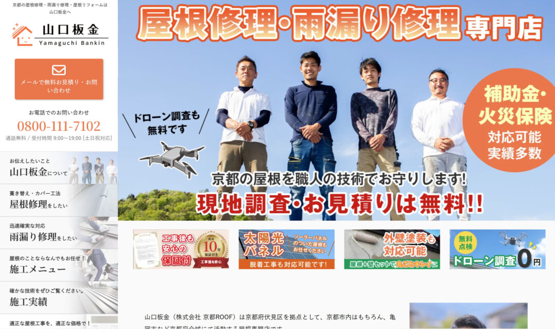 山口板金は、京都市を中心に屋根・雨漏り修理を行っている業者です。