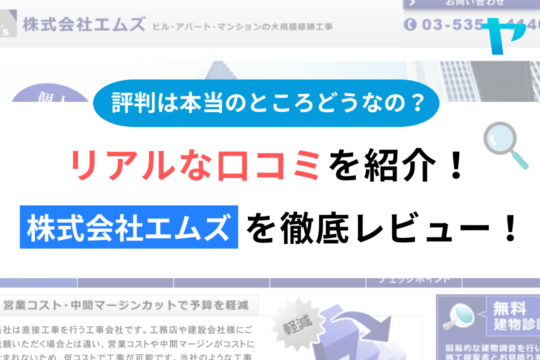 今回は、東京都渋谷区を拠点に大規模修繕を行っている株式会社エムズのレビュー・評判について徹底的に調査してみました。