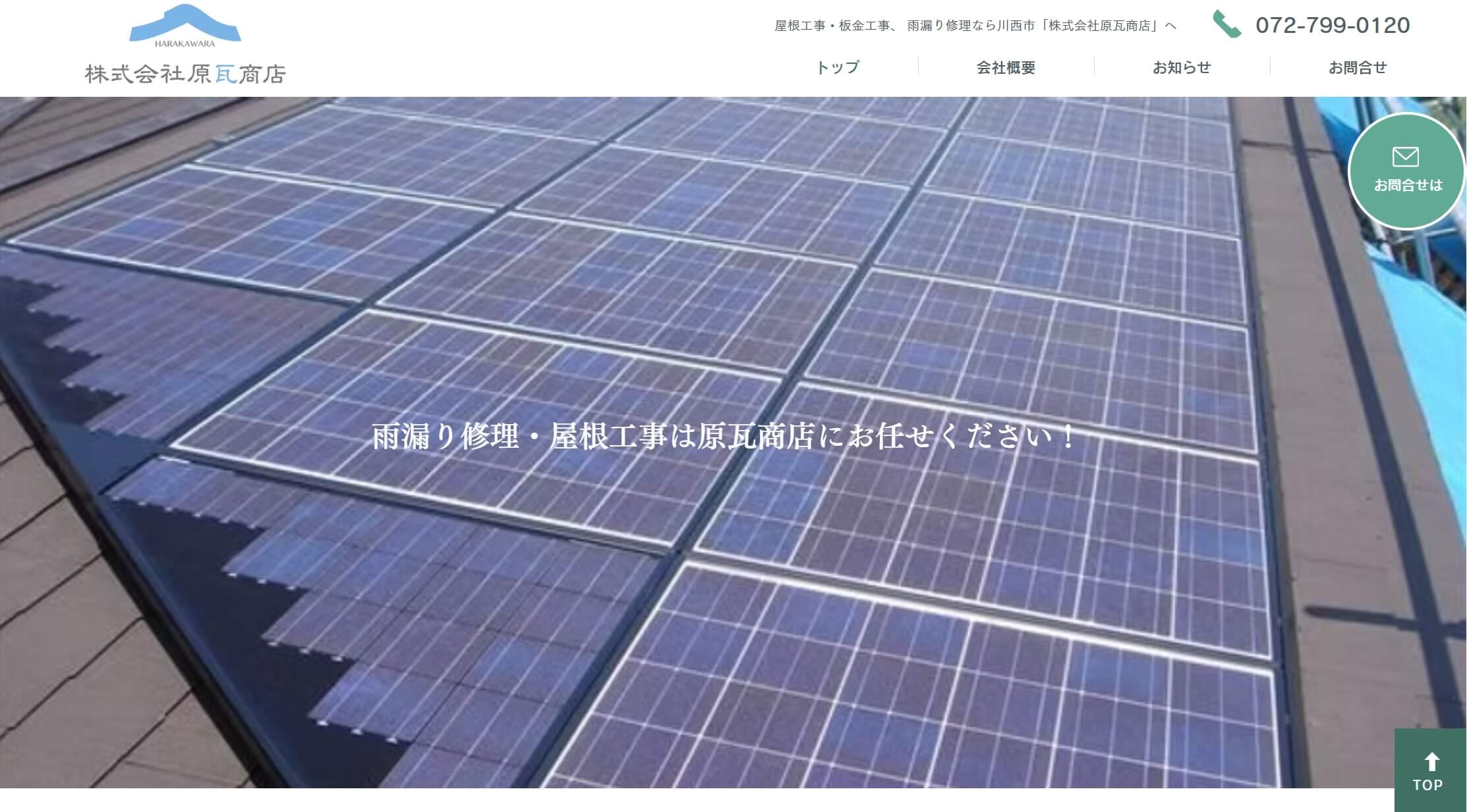 株式会社原瓦商店は川西市を中心に屋根に関する工事を行っている業者です。