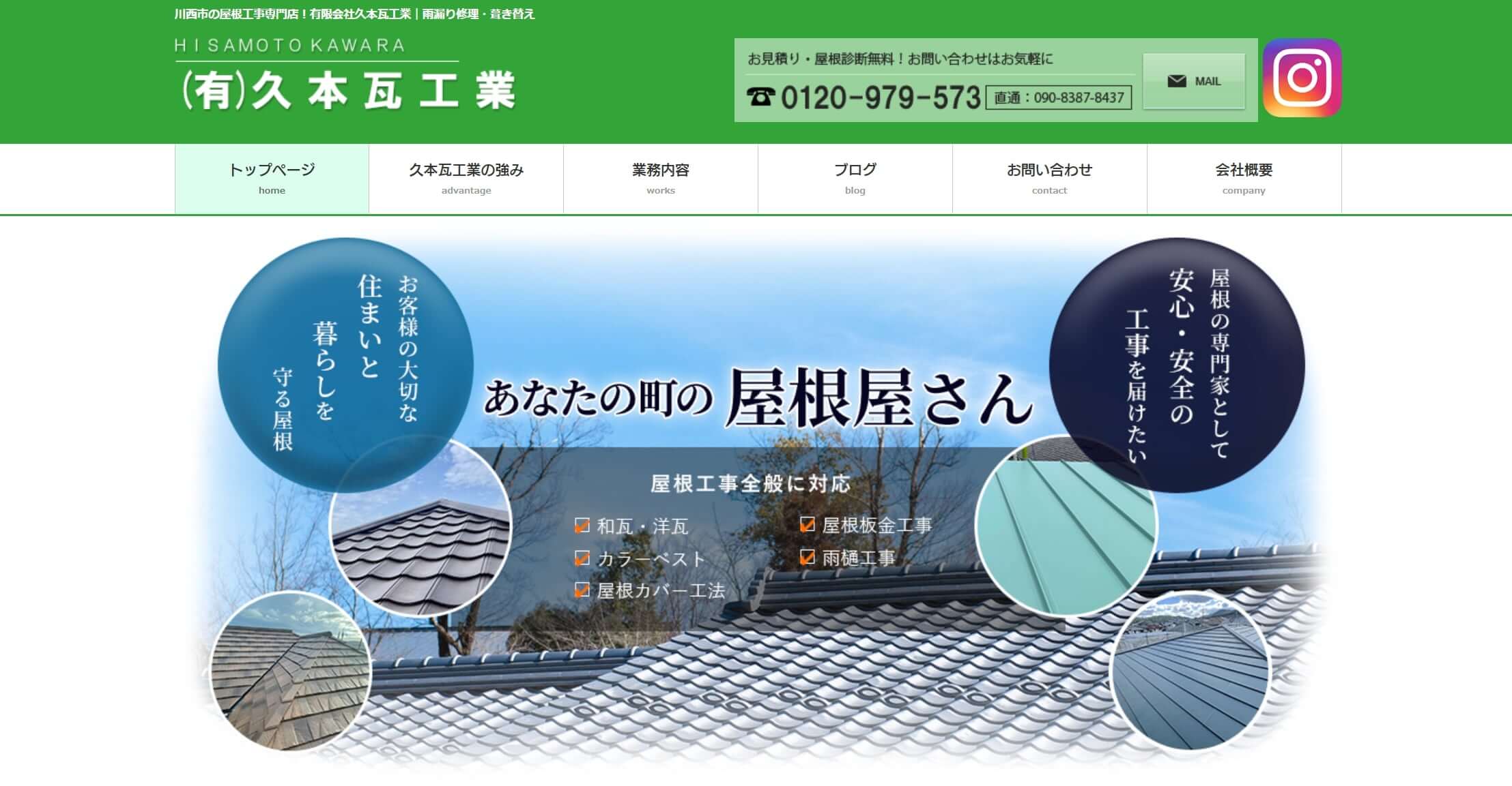 久本瓦工業は川西市を中心に屋根工事全般を行っている施工店です。
