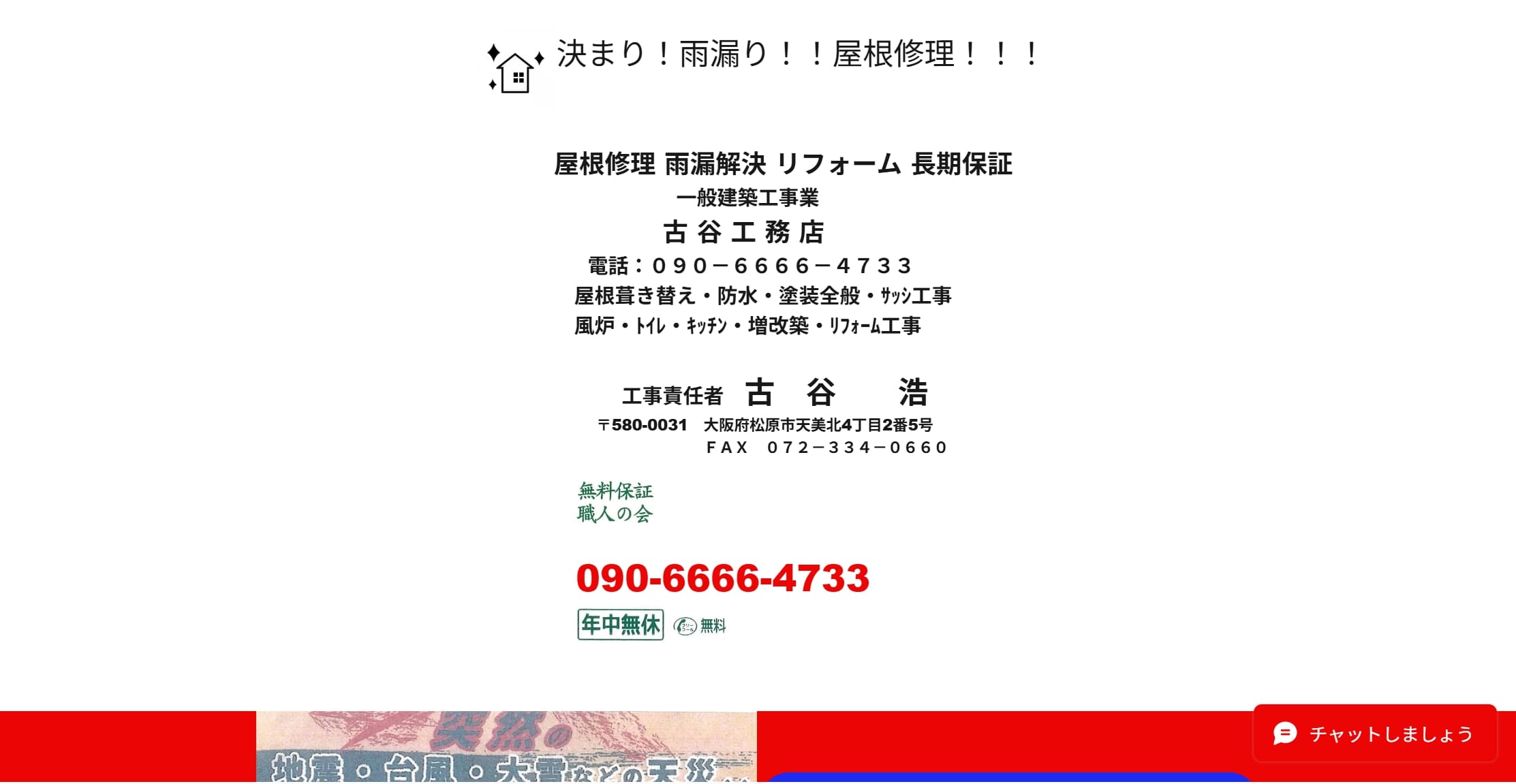 古谷工務店は松原市を中心に雨漏り修理や外装塗装などを行っている施工店です。