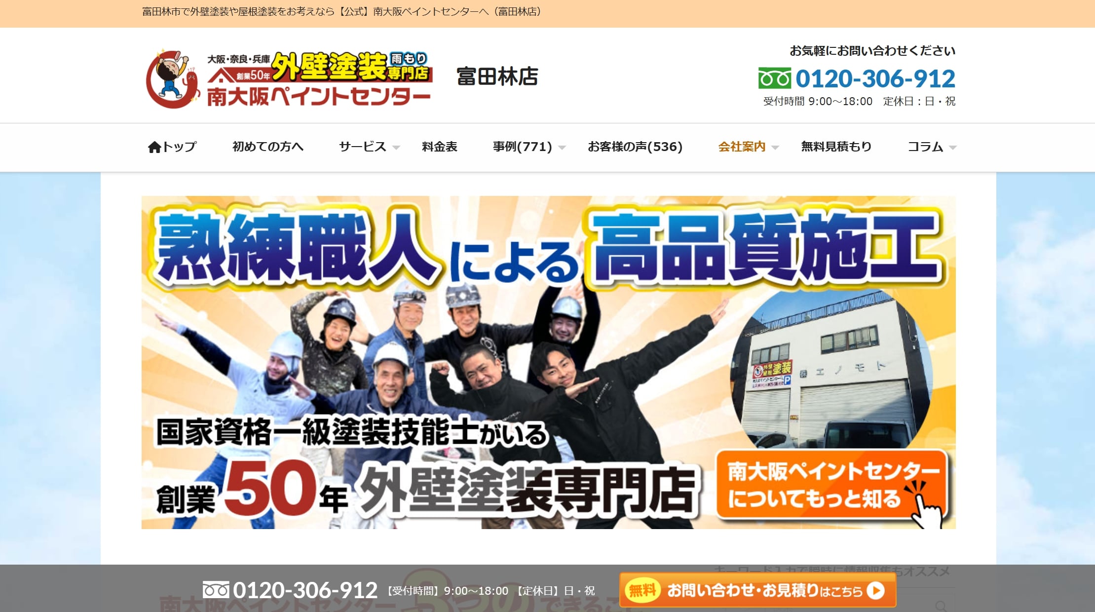 南大阪ペイントセンター富田林店は富田林市を中心に屋根修理と外壁塗装を行っている業者です。