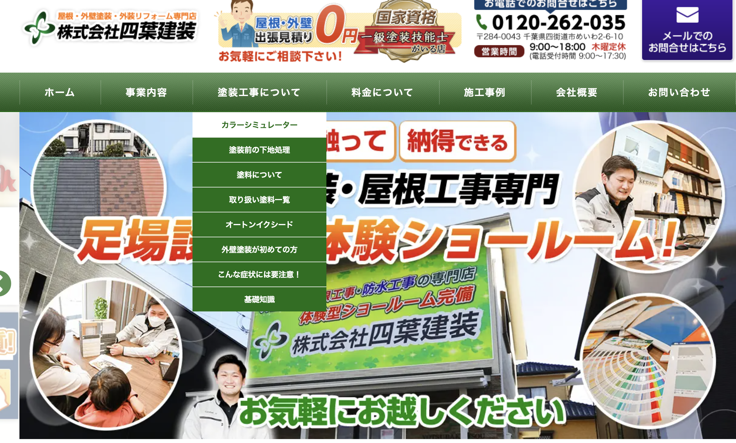 株式会社四葉建装は四街道市を中心に、屋根の点検、葺き替え、雨漏り修理など、広範囲でのリフォームの対応をしています。