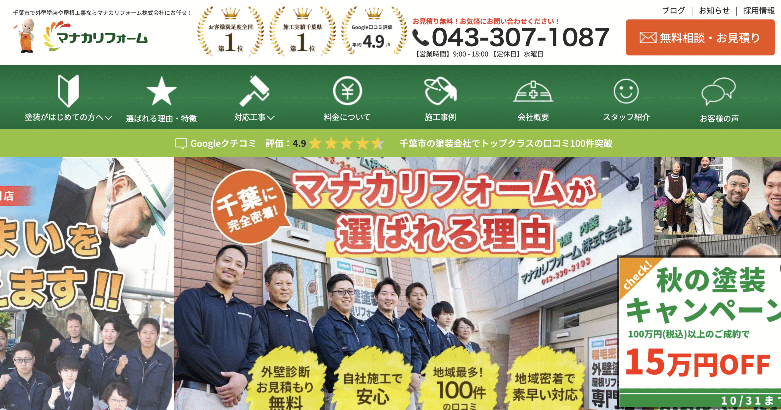 多くの施工実績があり、千葉県では口コミNo.1を獲得しているというおすすめの会社です!