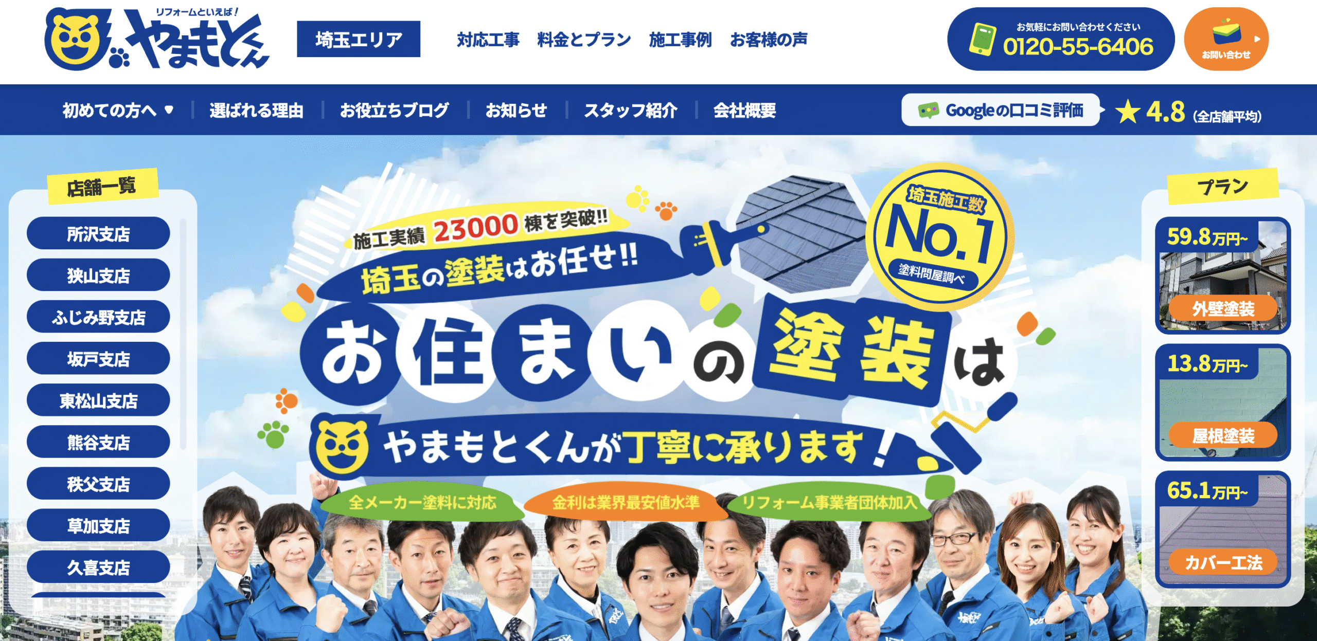 多くの施工実績があり、埼玉県では口コミNo.1を獲得しているというおすすめの会社です!