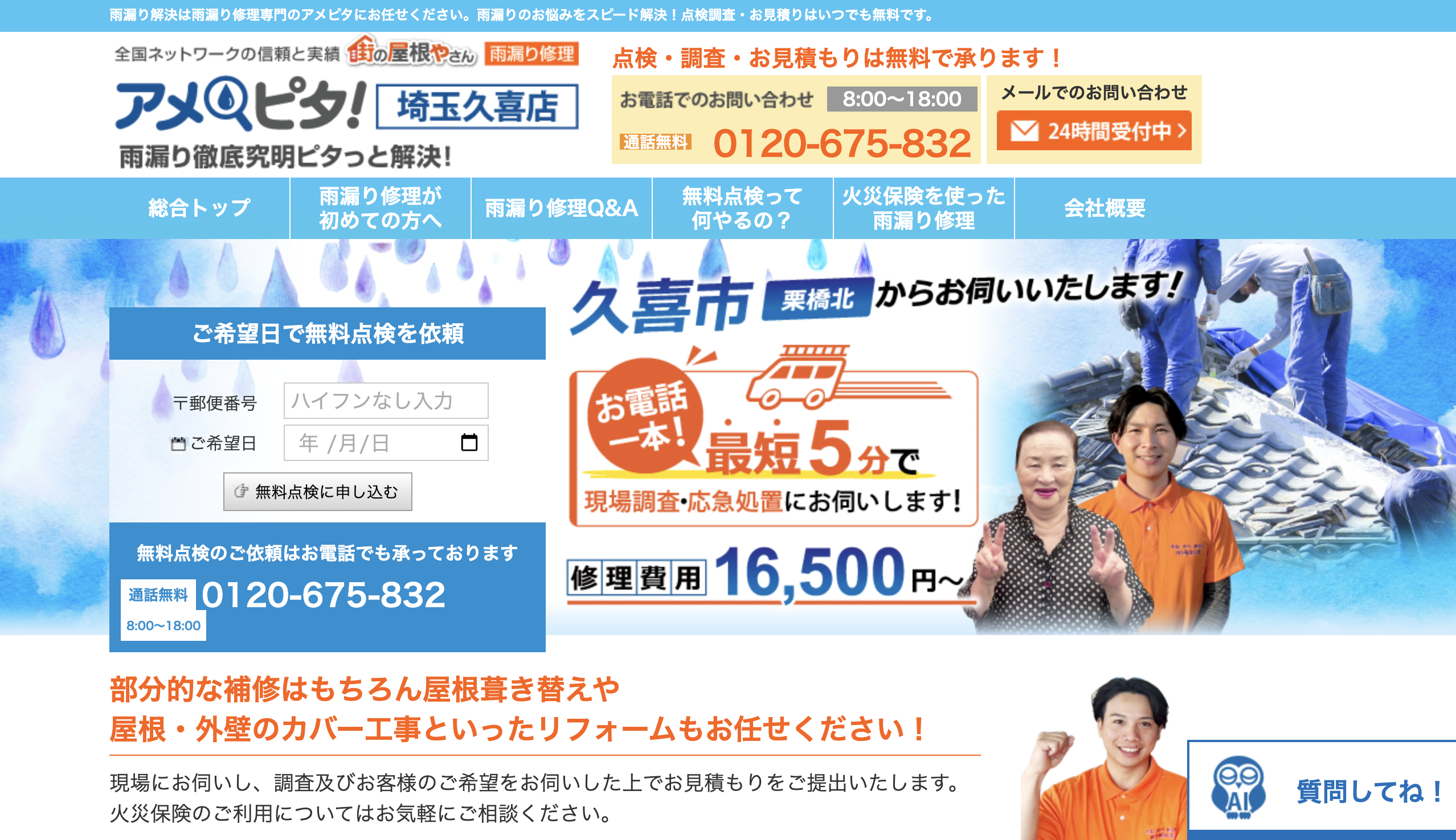 久喜市おすすめ雨漏り・屋根修理業者ランキング3位アメピタ