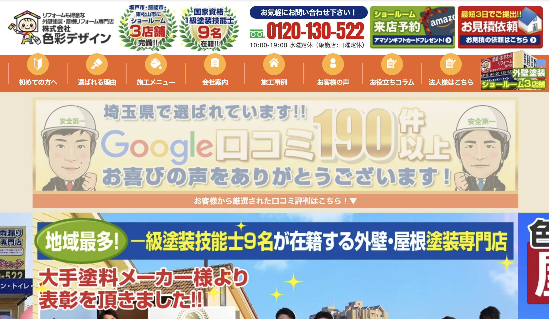 Google口コミでは星5、埼玉県の外壁塗装では口コミランキングNo.1を獲得しております!