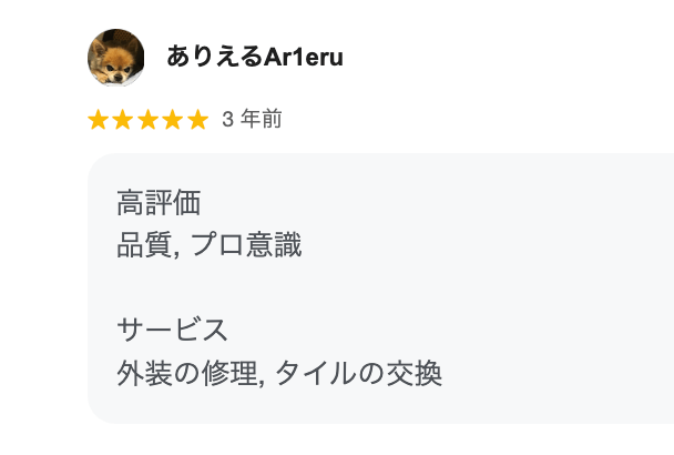 口コミの数や内容には、工事を行っている数や工事内容の品質、お客様満足度が表れます。