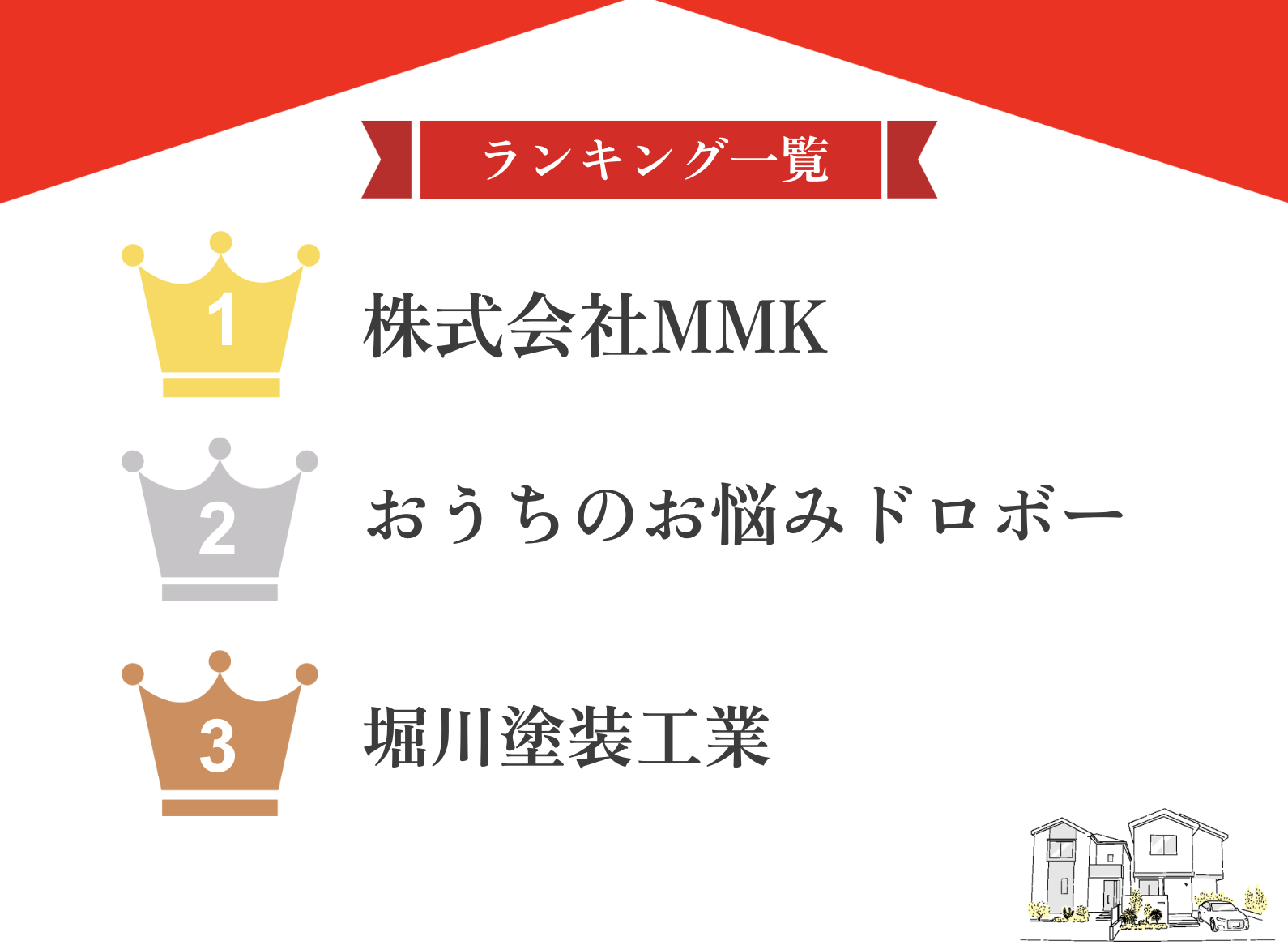 3位 | 堀川塗装工業 | ★★★★☆ 4.1 | △ | △ | 〇 | 〇 |