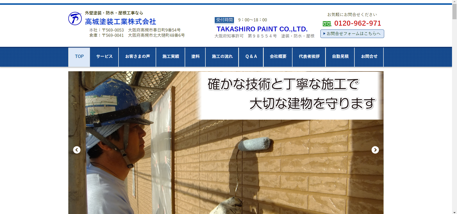 高城塗装工業は、昭和40年創業の高槻市に本社を置く外壁塗装・防水・屋根工事の専門店です。