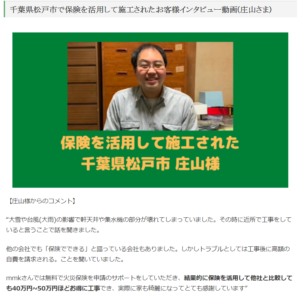 お客様の中には火災保険を活用することで20~70万円をお得に工事できている事例もあるようです。