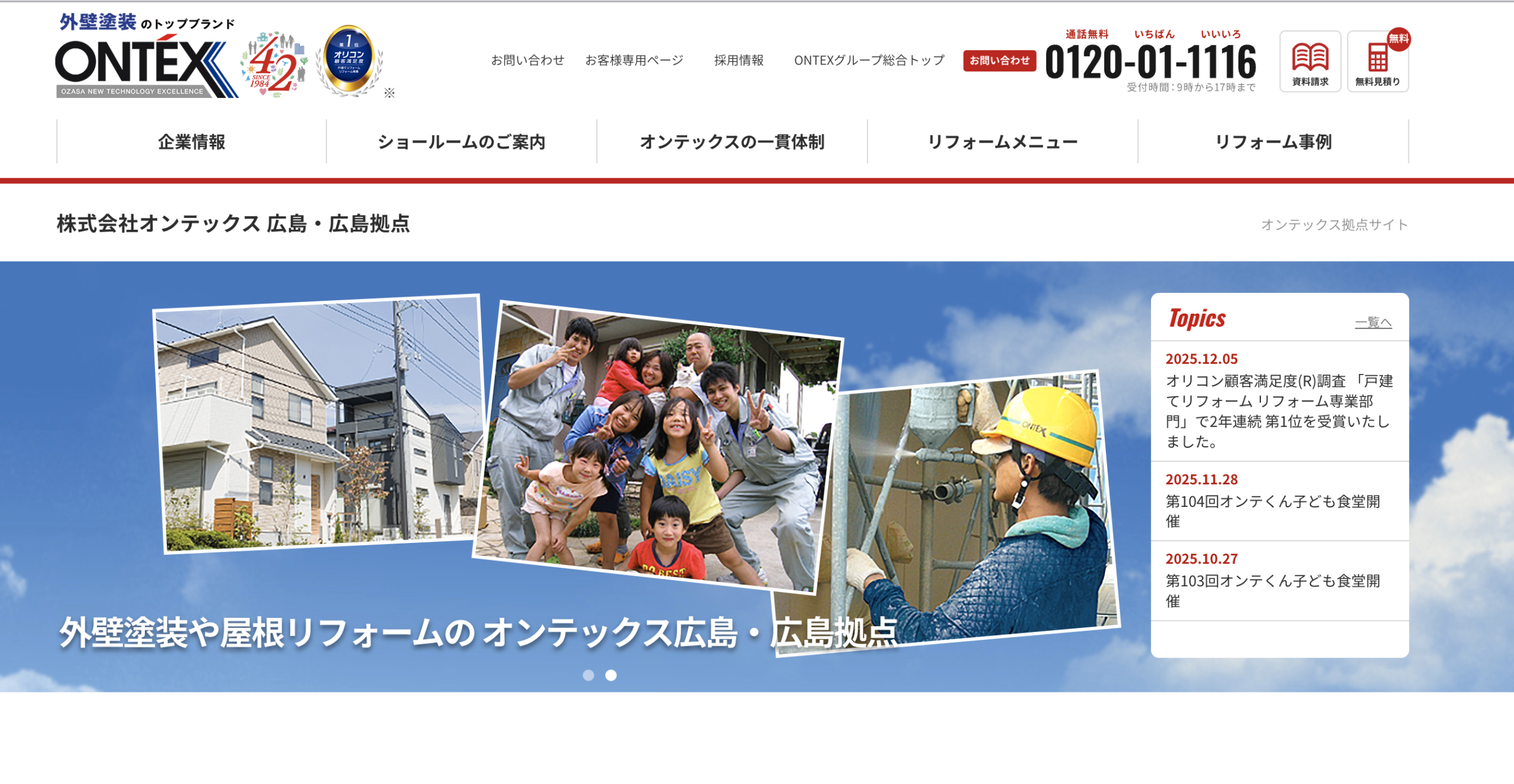 - 広島市の外壁塗装業者口コミ・評判ランキング7位 オンテックス広島・広島拠点